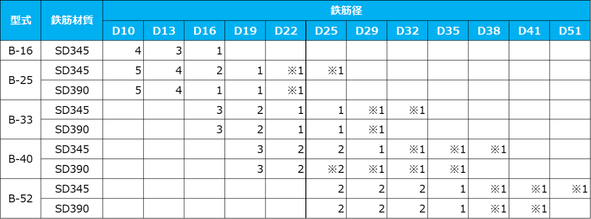 ▮加工可能鉄筋径及び同時曲げ本数