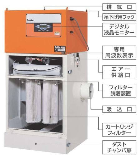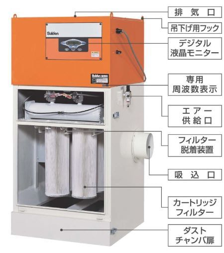 このエアー圧による逆洗機能を繰り返し行い、常にフィルターをリフ レッシュして、集塵能力を自己保持します。