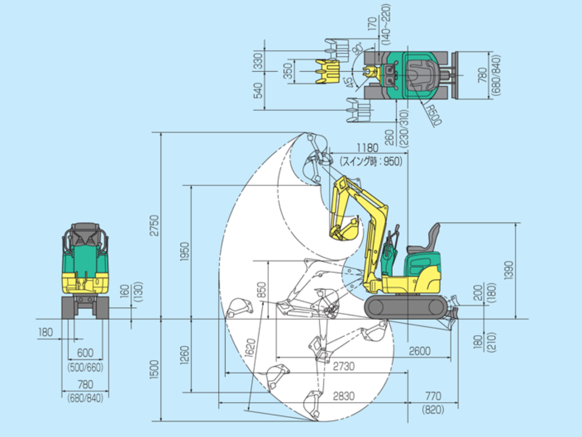 狭所への進入性と安定した作業性を両立させたヤンマーの可変脚は、脚幅拡大時でもガタがおこりにくい頑強構造です。
