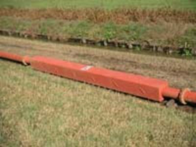 写真左側は砂層を30m敷き、そこにドレーンを入れたサンドフィルターによる脱水方法。写真右側がドレーンを入れた脱水方法。