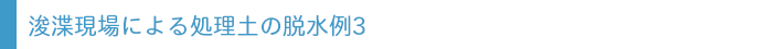浚渫直後から処理土は大きく強いフロックを形成するので、浚渫土は処理ヤード内で匂配ができ、上水が低いところへ溜まる。このヤードは底面にドレーンを設置してあり、下方向からの脱水をするようになっている。SS(10よびPH(6.5~8.6)ともに基準値をクリアした。